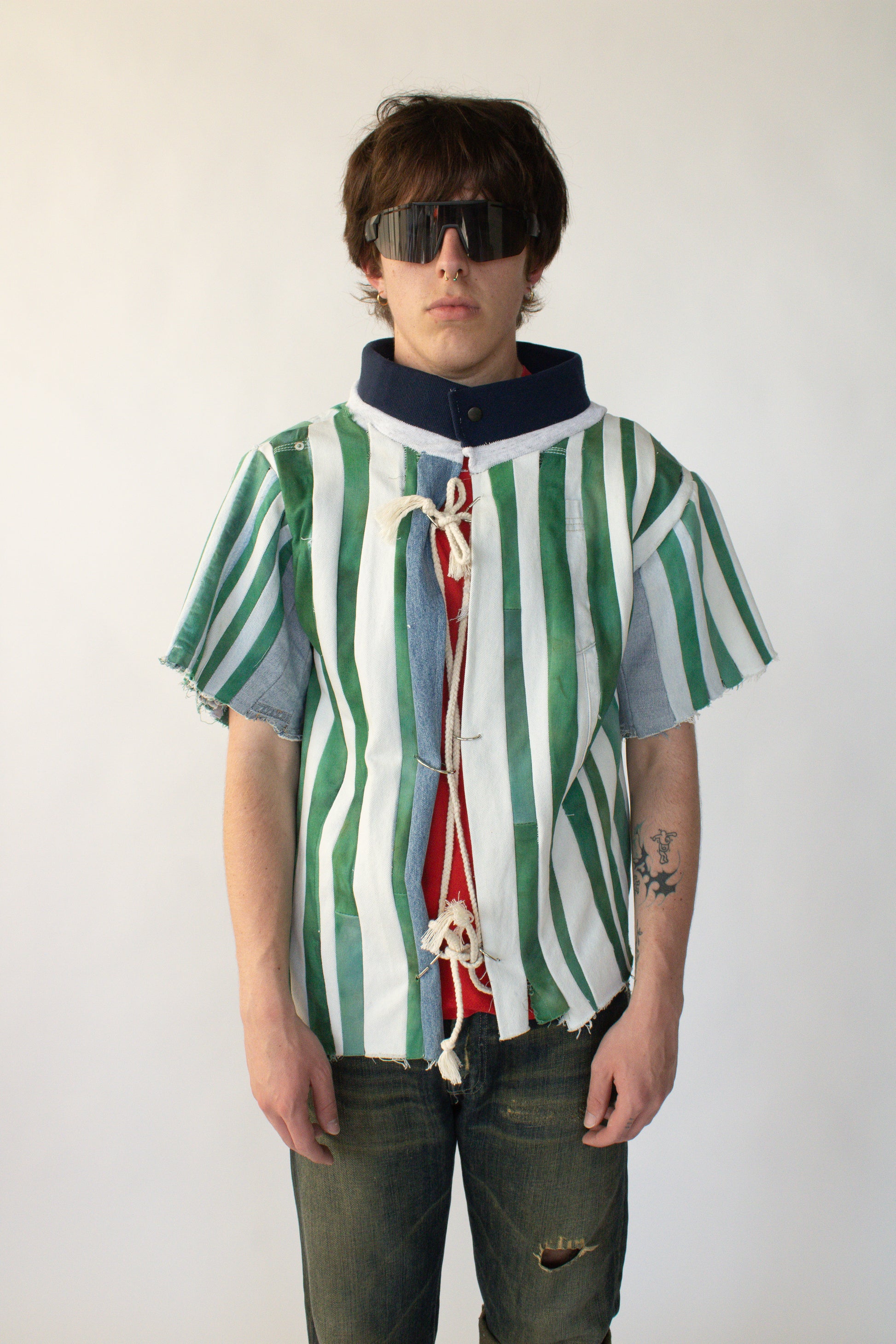 - 100% sustainable, short sleeve jacket repurposed from denim.