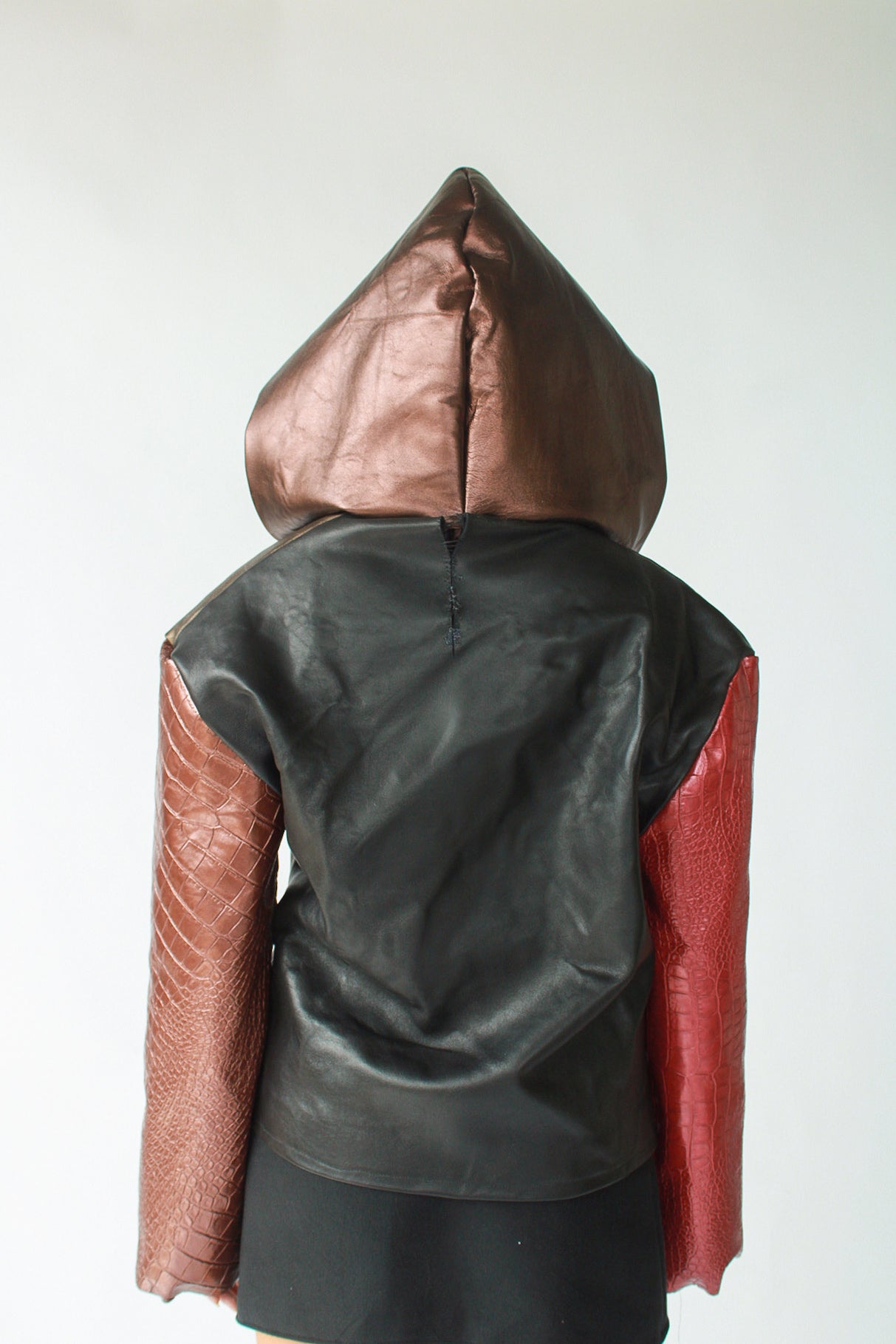 - 100% sustainable, genuine leather hooded jacket made out of deadstock leather.