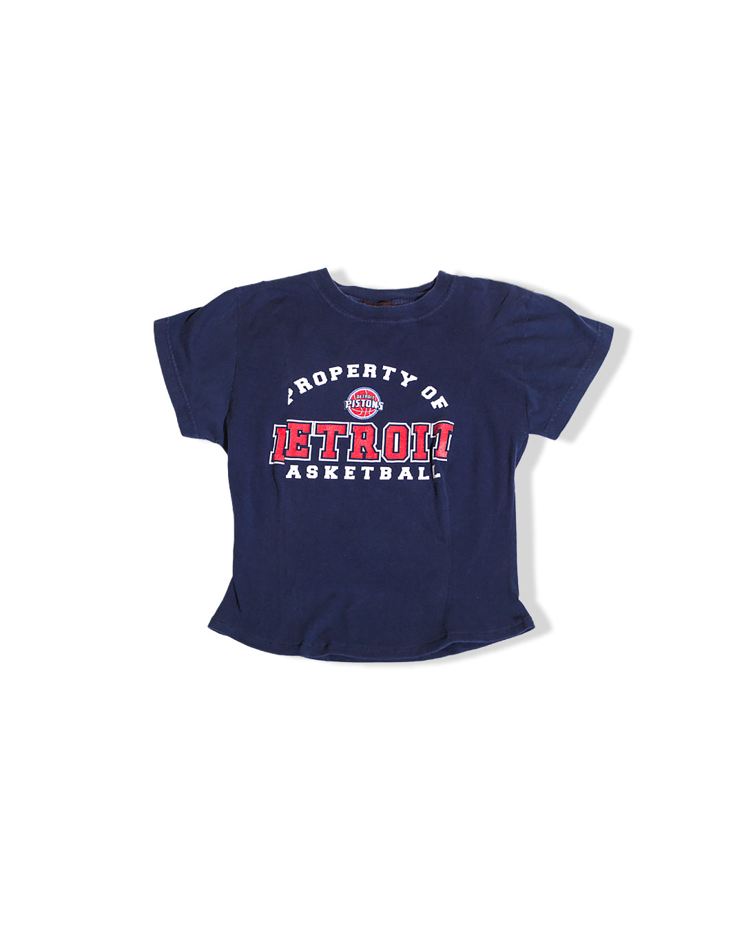 One of one exclusive piece. Reworked top upcycled from a Detroit Piston's T.