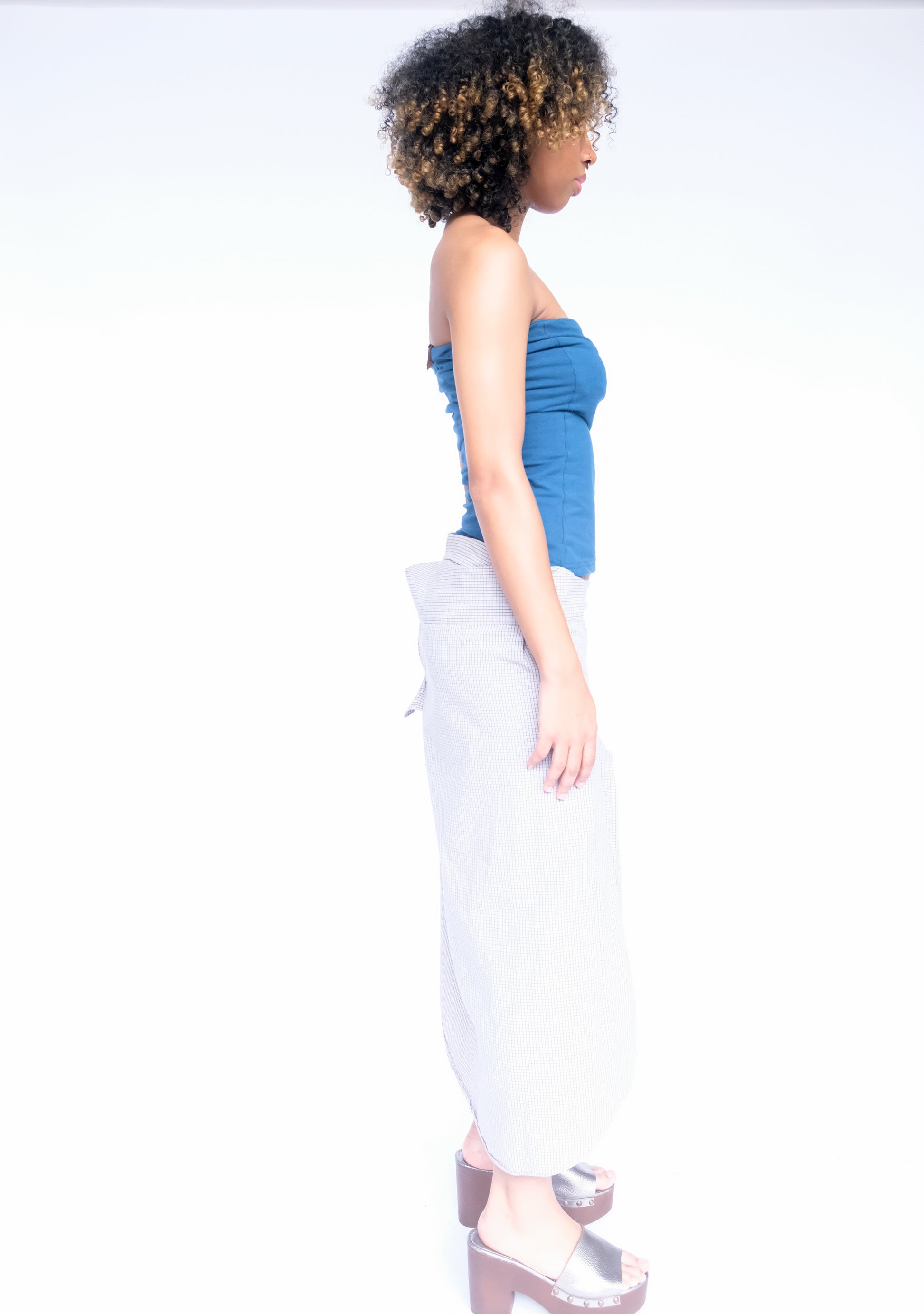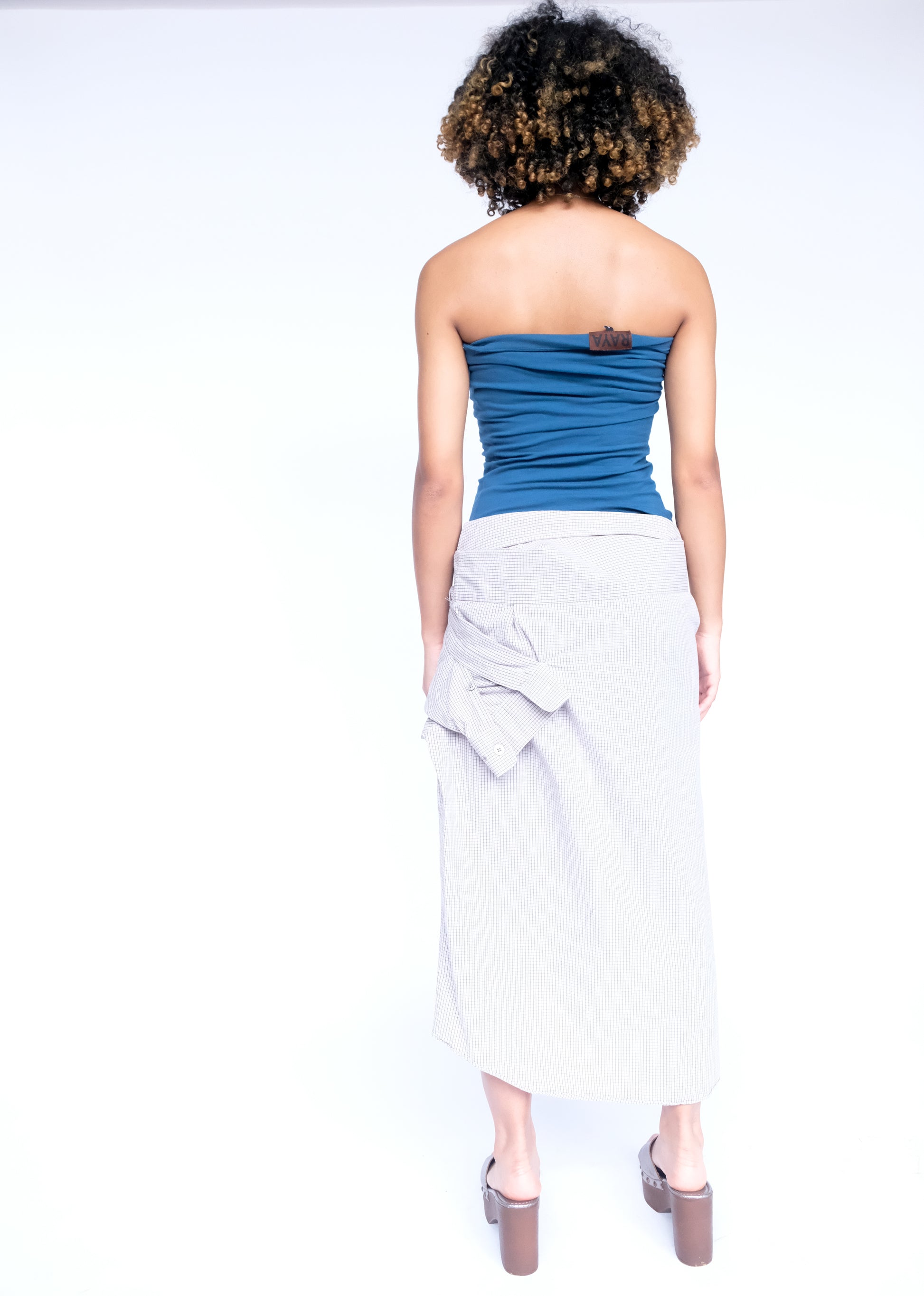 One of one piece upcycled out of a vintage button down shirt, exclusively sourced from The Velvet Tower.