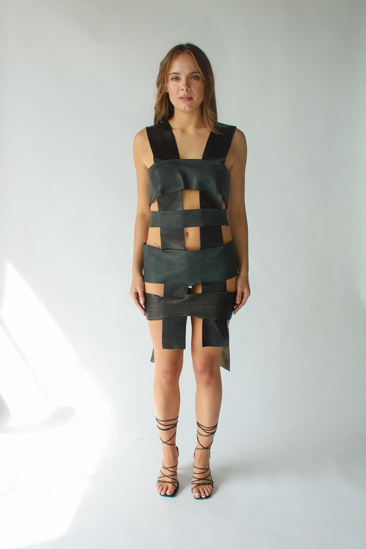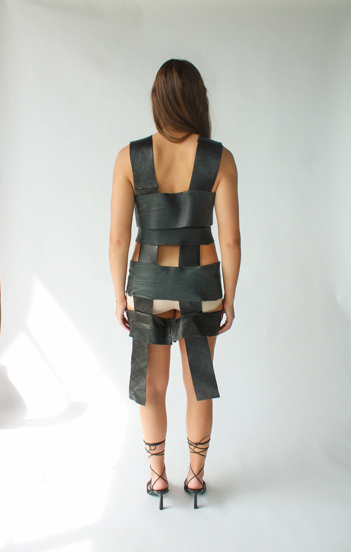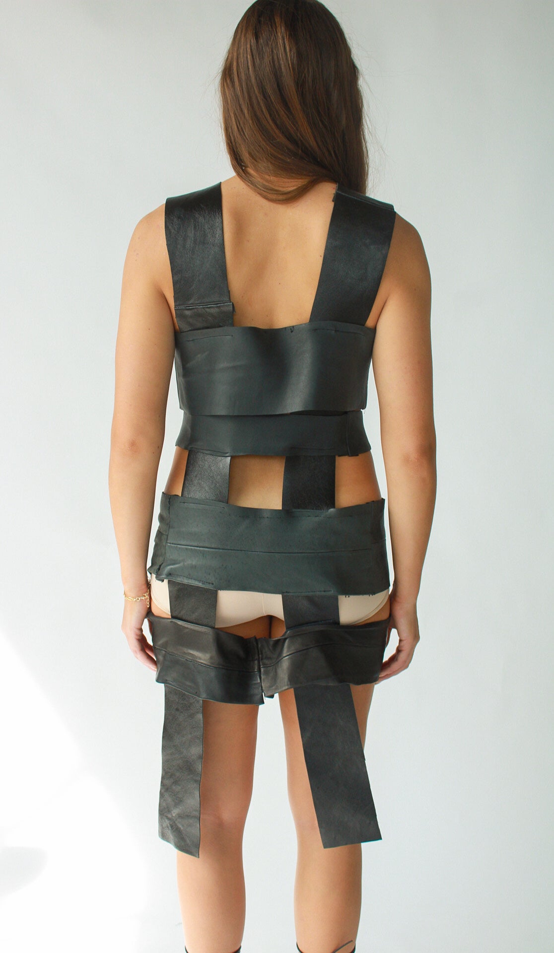 - 100% sustainable, dress made from deadstock leather.
