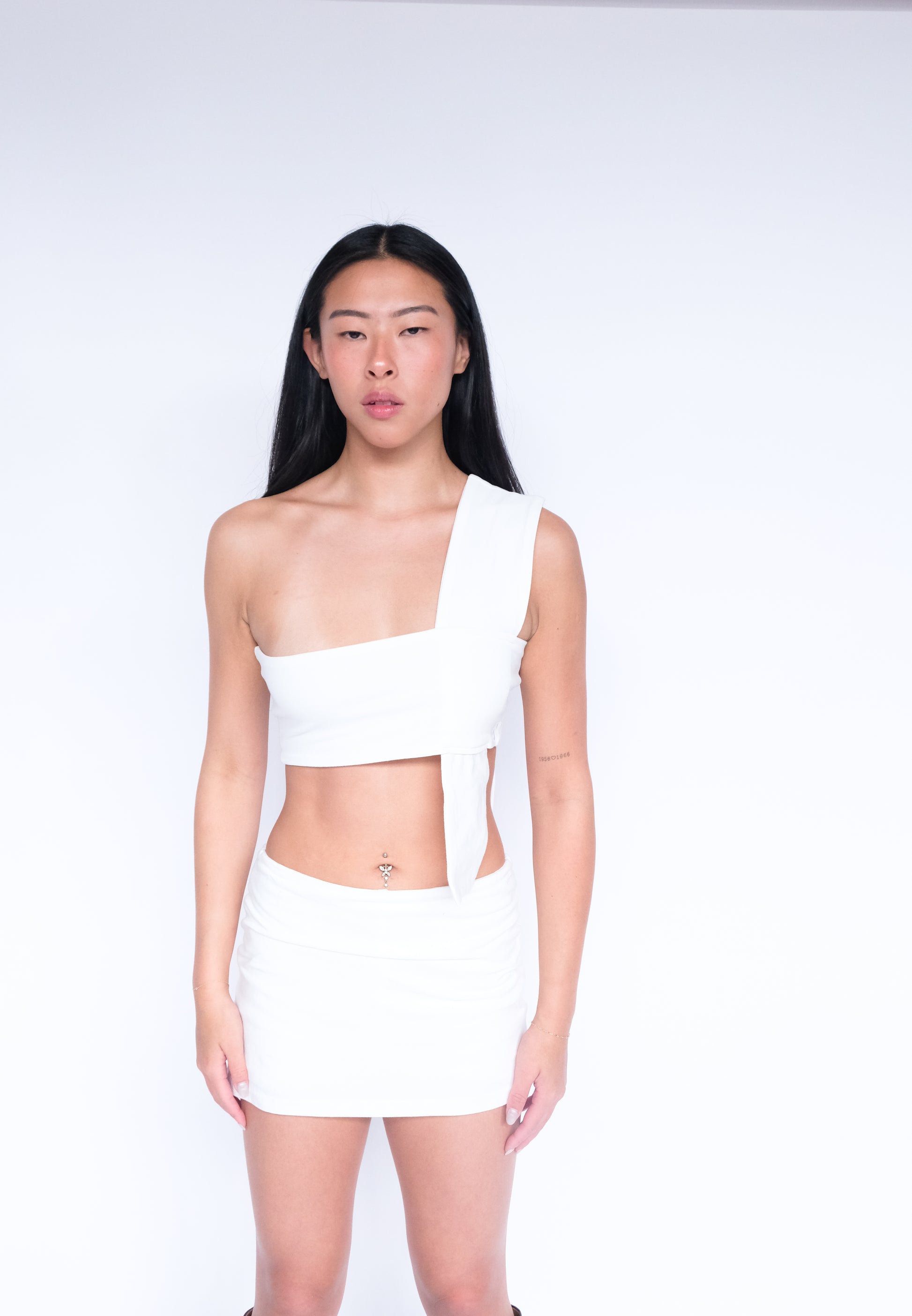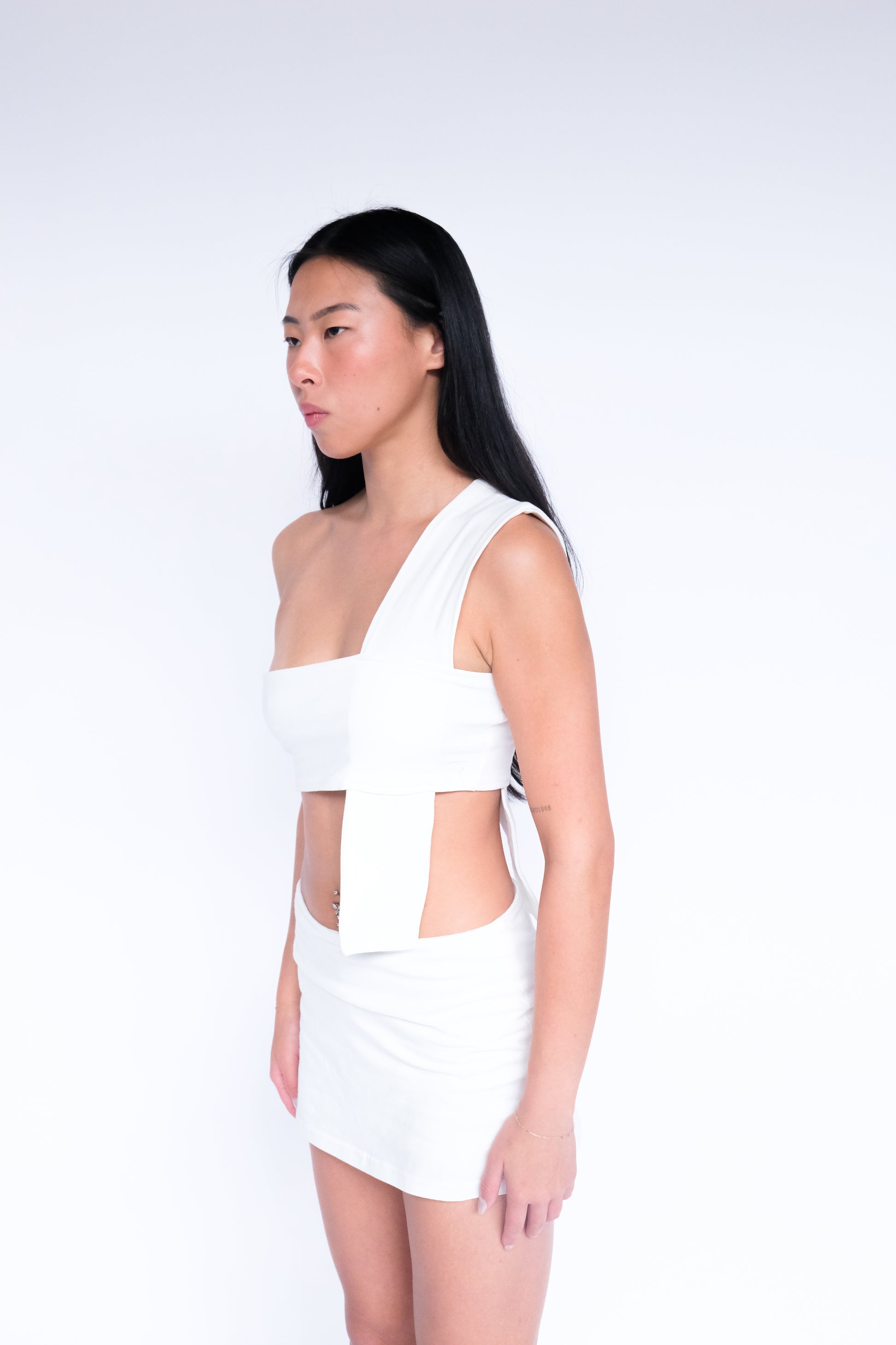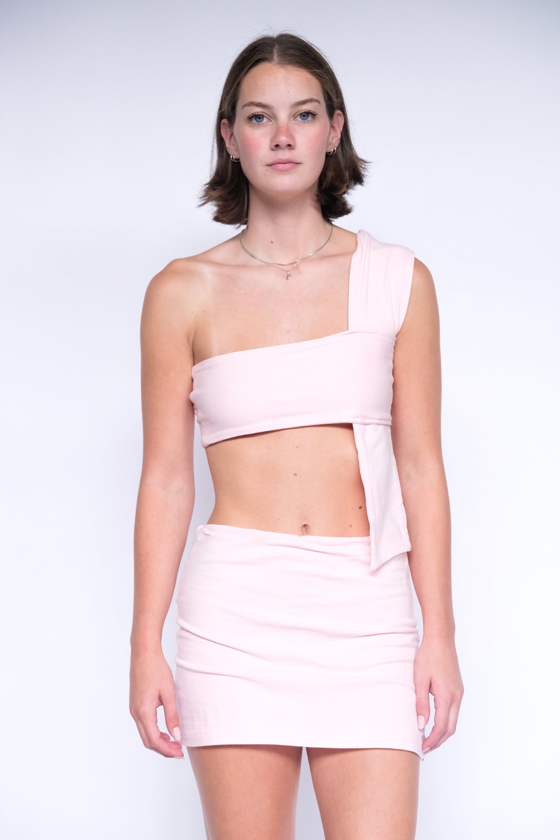 The cotton vendetta is a great alternative to our iconic leather Vendetta top. The cotton vendetta is a more casual way to wear our signature piece and a more fluid option as it can be paired with our best selling Demi skort or other sustainable knitwear pieces.