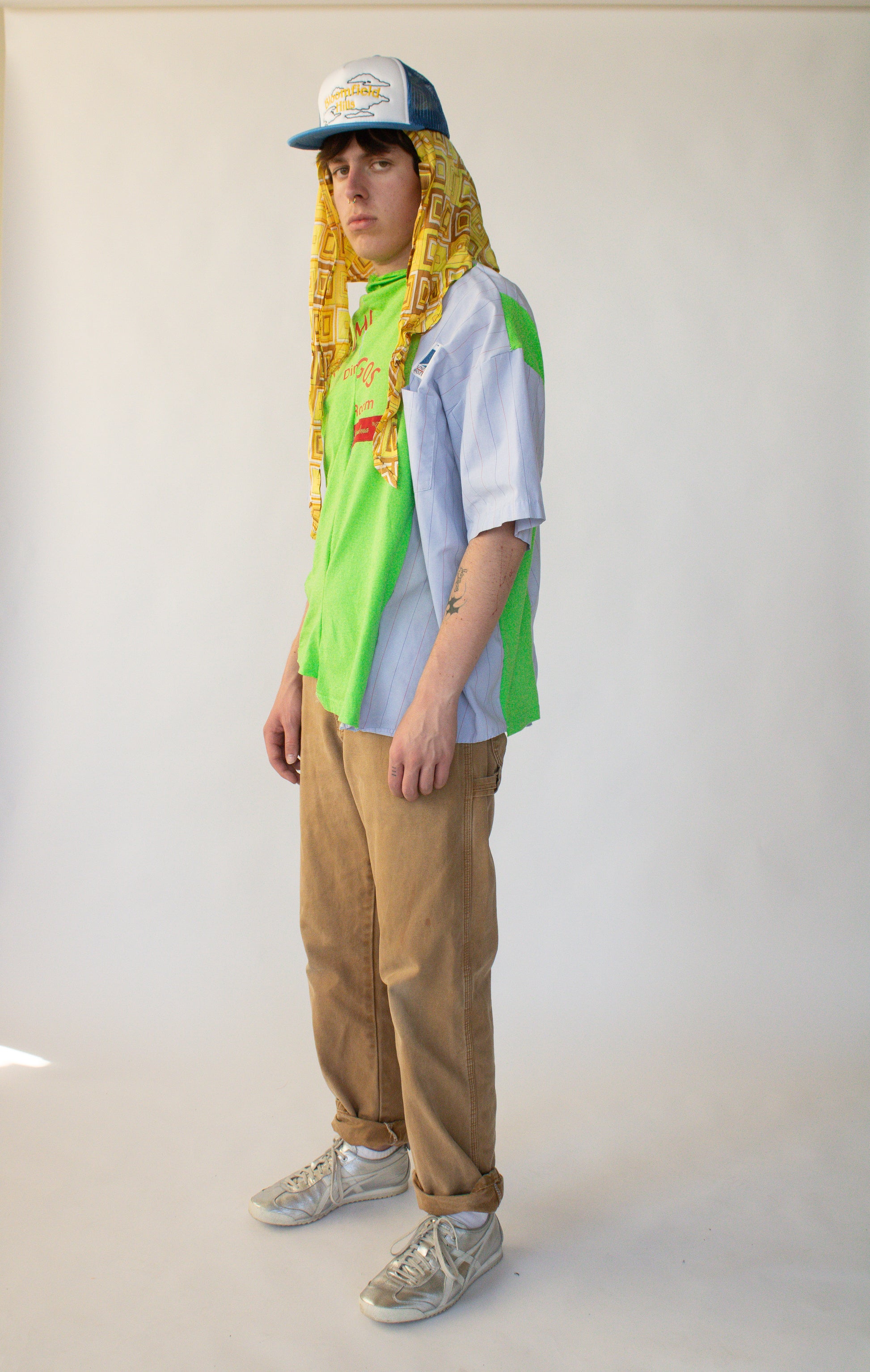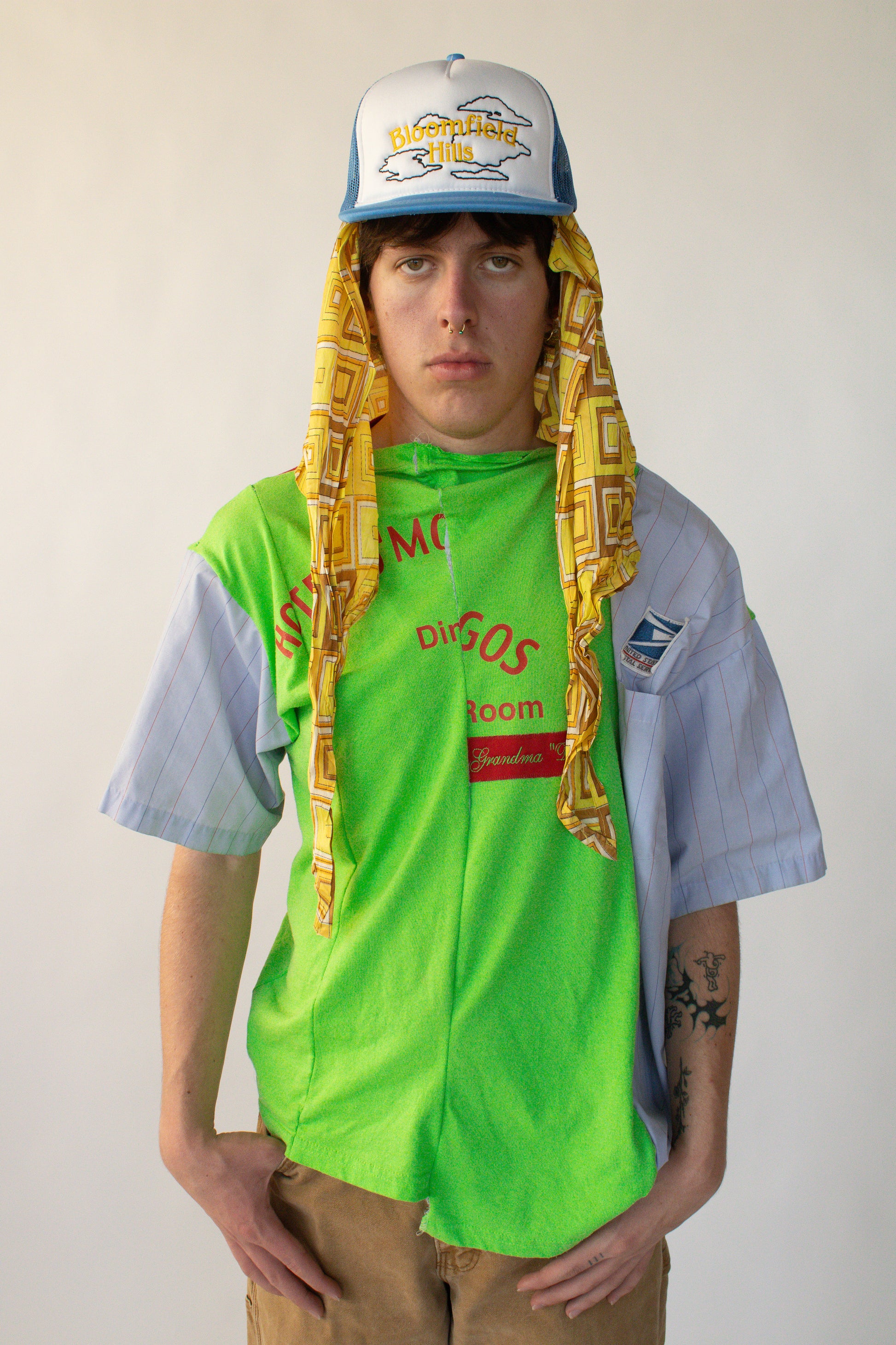 Fabric Content: 100% sustainable, a reworked USPS and Cafe D'Mongo's T.